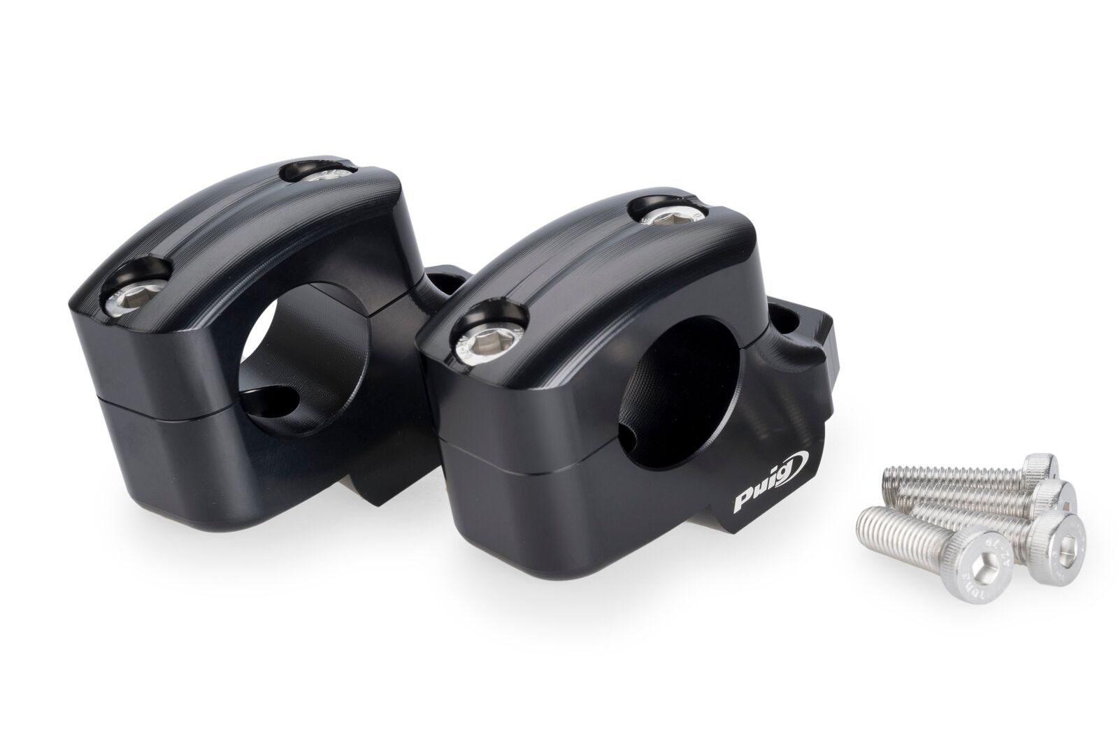 Move the handlebars of your motorcycle, improving riding ergonomics, with the universal Pullback risers from Puig. Made of high quality machined aluminum with subsequent anodizing for a better finish, they are a resistant and light piece.