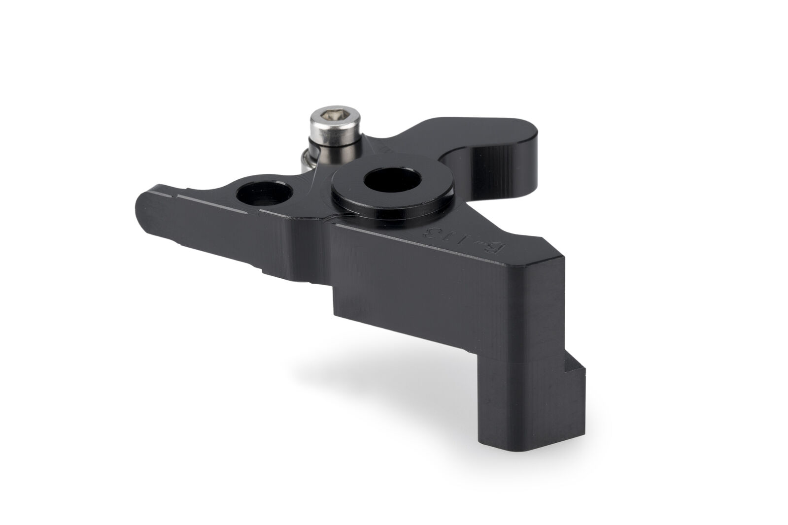 Adaptors machined from a high-performance Ergal 7075 aluminum block and black anodized. They are the perfect transmission to connect our levers with the original motorcycle supports.