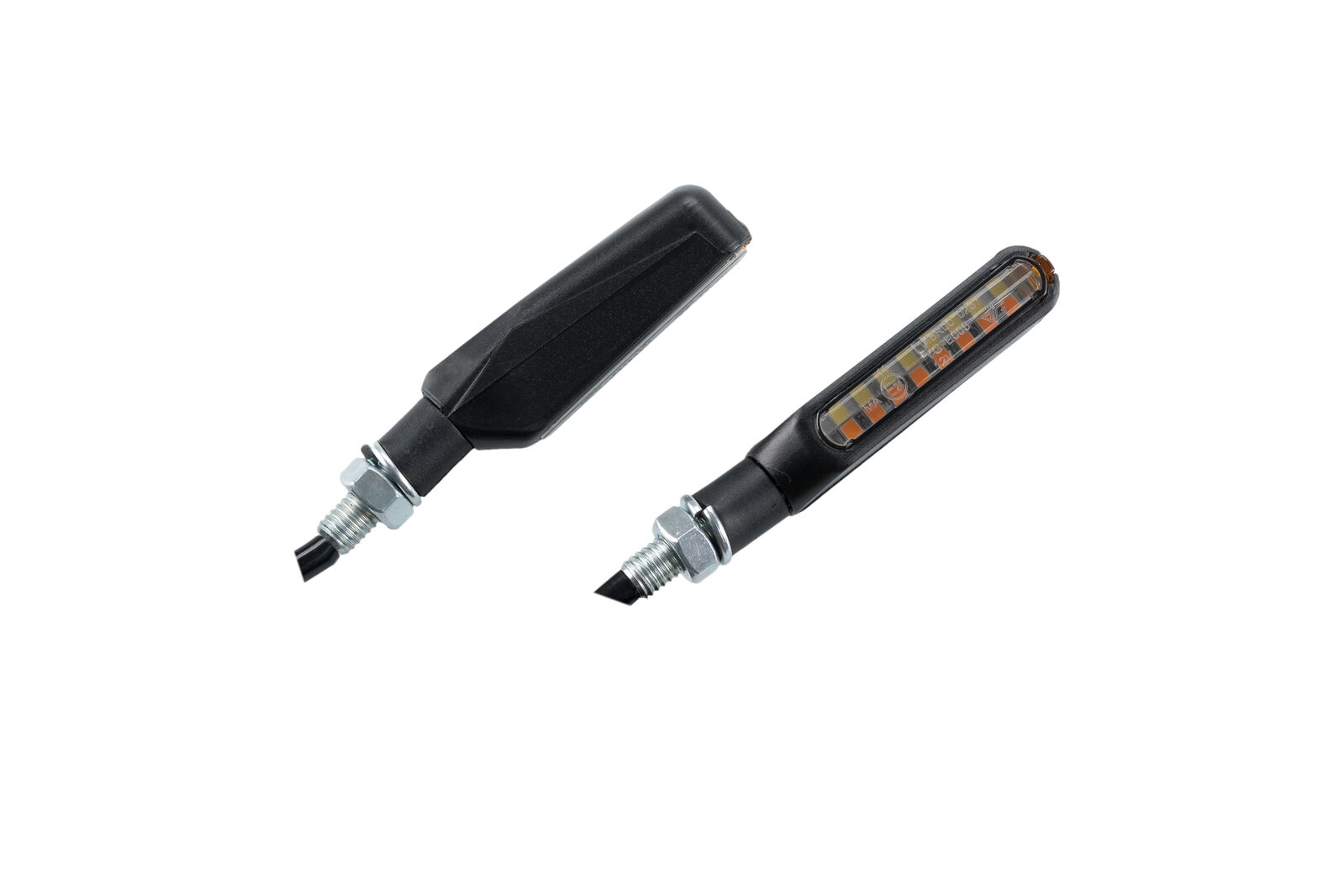 The PIN 2.0 turn signals have been designed to provide clear and functional signaling, combining a compact format with sequential LED technology. Their sleek design, with dimensions of 70x20 mm, allows for discreet integration into the motorcycle without compromising visibility or safety.