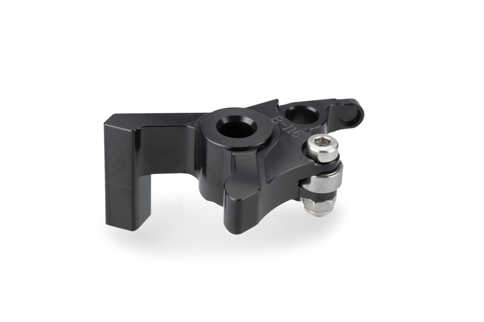 Adaptors machined from a high-performance Ergal 7075 aluminum block and black anodized. They are the perfect transmission to connect our levers with the original motorcycle supports.