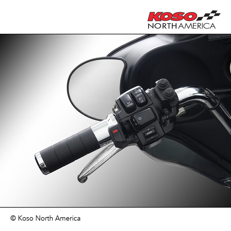 Finished are the days of searching around for a dial or button to power on heated grips. Our Titan‑X heated grips for Harley‑Davidson® feature an integrated 5 temperature level thumb switch which allows riders to easily power on/off or adjust the level of temperature without having to remove their hands from the handlebars.
