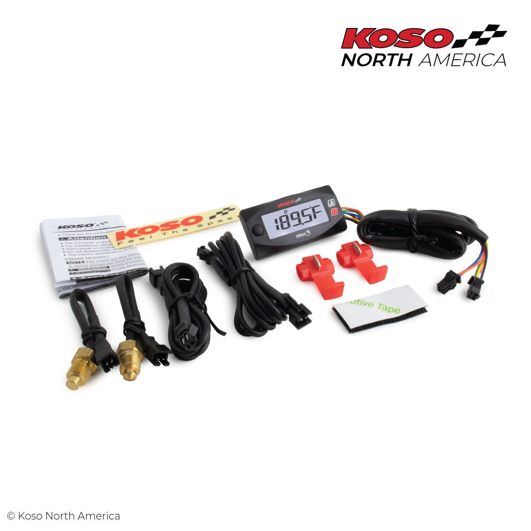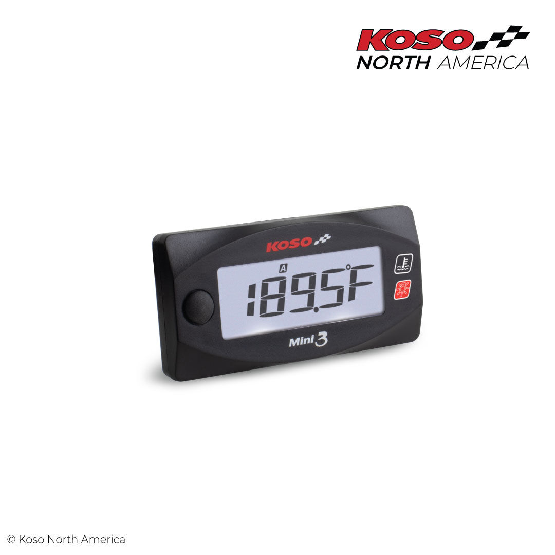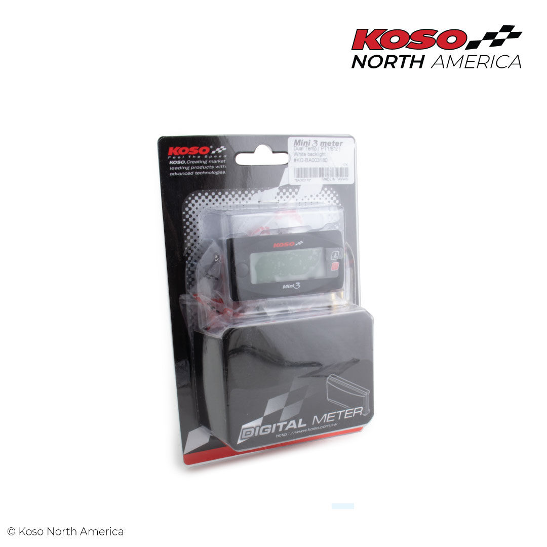 This is a KOSO MINI 3 - DUAL TEMPERATURE METER