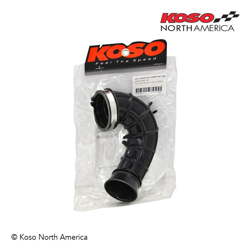 Our air box connecting tube has been developed to link the Koso 34 mm Throttle body and the actual air box.