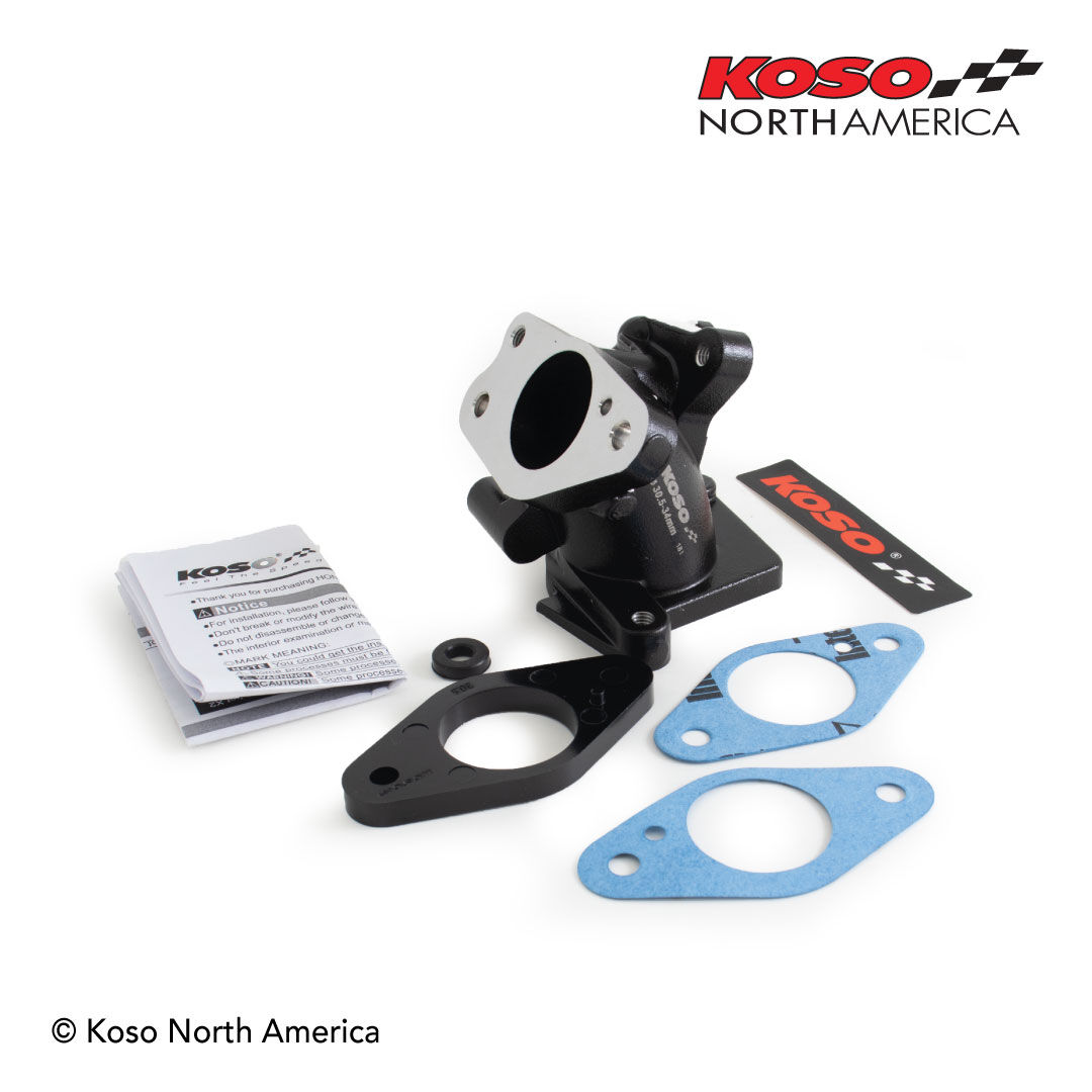 As the throttle body and intake manifold are used to control the amount of air flowing to the engine’s combustion chamber, they are important elements of the admission system. Using our Koso’s 34 mm throttle body in conjunction with our 30.5 to 34mm intake manifold will allow a better air/fuel mixtures for a quicker throttle response.
