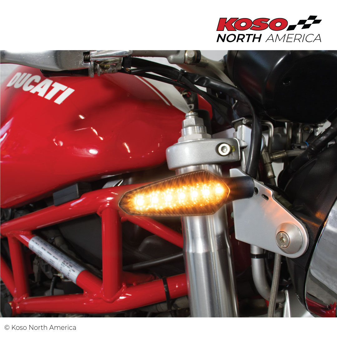 The Koso Nuovo LED indicator lights are a great way to modernize the look of your bike without straying away from the OEM appearance. Sold in a pair of two, DOT and SAE certified. These indicators feature 6 ultra-bright LED’s per indicator to keep you safer and more visible when changing lanes.