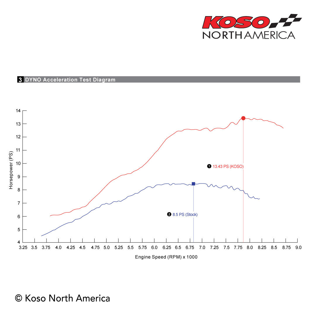 THIS IS AN AFTERMARKET PART BUILT FOR RACING PURPOSES ONLY. KOSO IS NOT RESPONSIBLE FOR ANY DAMAGES CAUSED TO THE PARTS, VEHICLE, OR TO YOURSELF AND OTHERS. ENGINE PARTS ARE NOT UNDER WARRANTY NOR IS COLLATERAL DAMAGE OR COST OF LABOR, IN CASES OF MALFUNCTION.