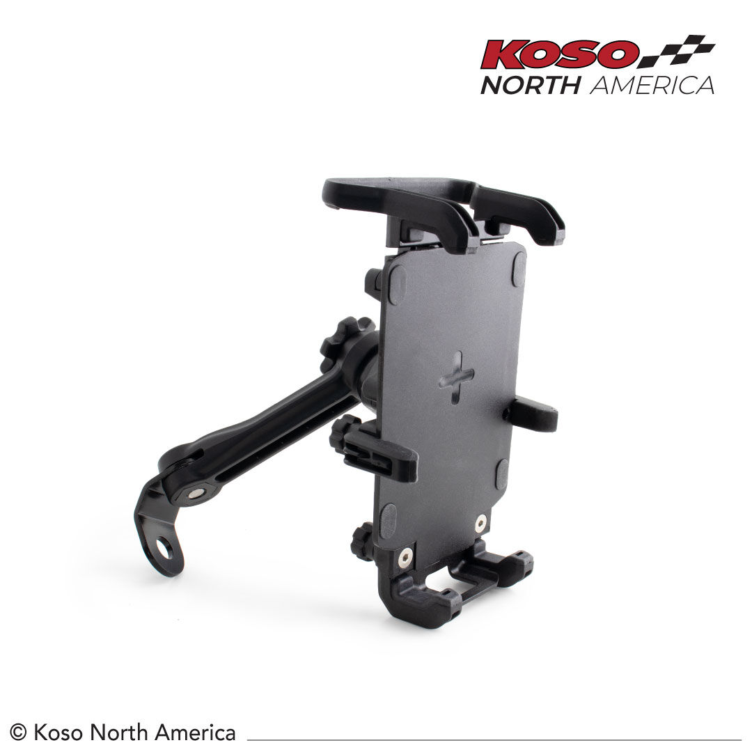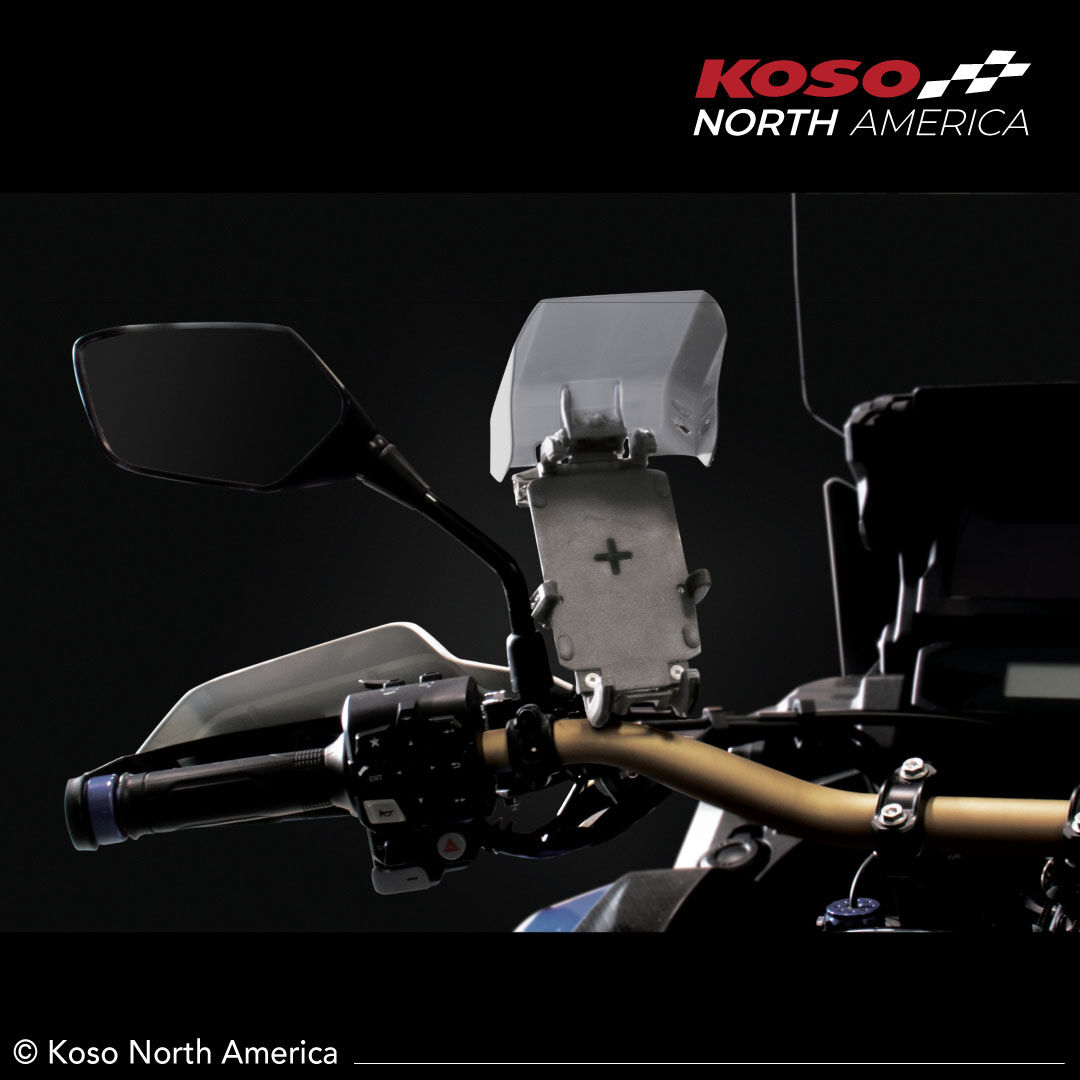 The new Koso Armor phone mount is the companion you need on your upcoming adventures. Its adjustable screws can suit any smartphone size, even those with thick cases. Its inductive charger allows you to charge your device without any connection or wire to extend the longevity of your phone’s battery in an efficient way. The visor is also part of a well thought out innovative design that the Armor will bring for a clear view of your phone screen.