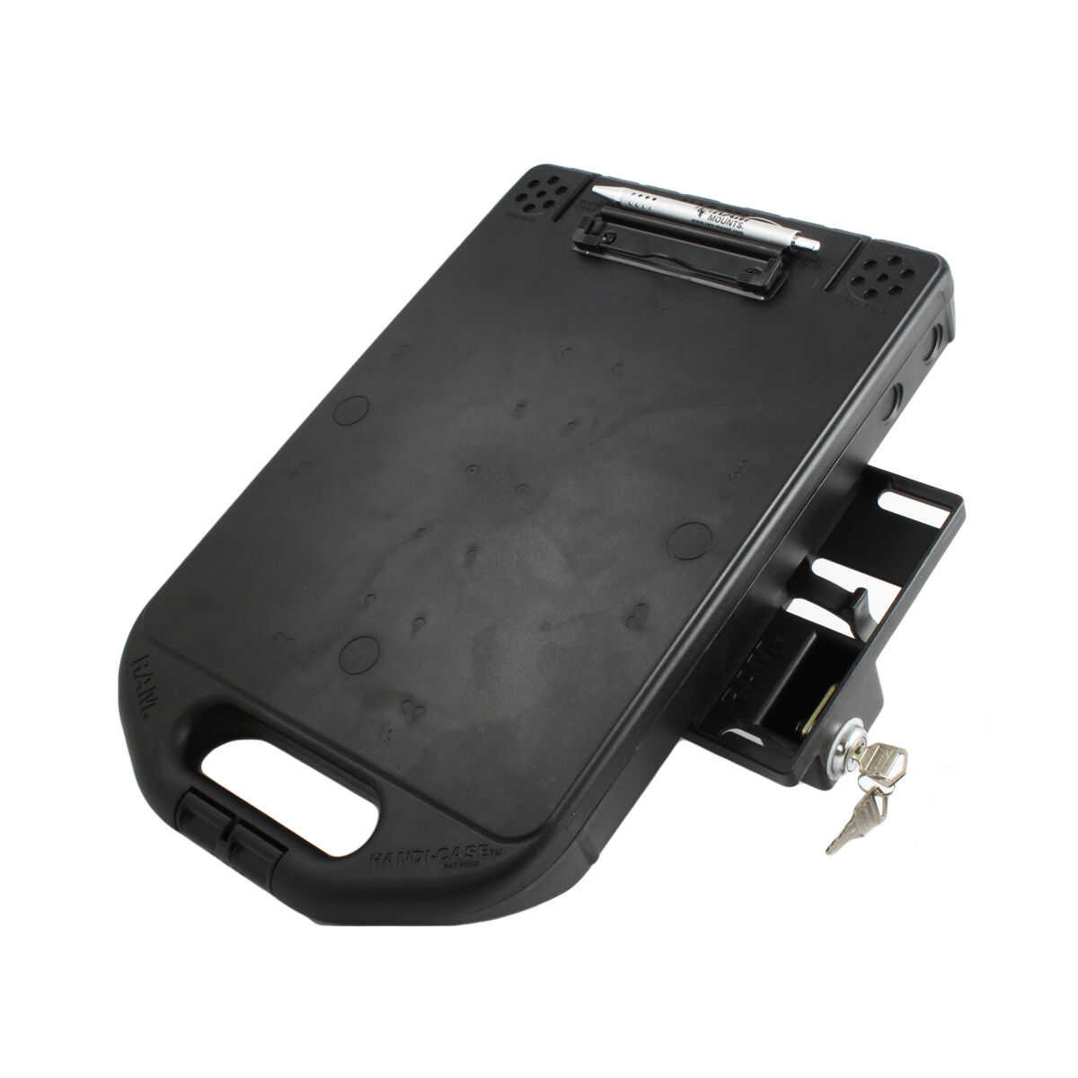 The RAM Handi-Case is capable of doing so many tasks it will astound you. When a brief case is too much, but a notepad is not enough, the Handi-Case is exactly what you need. Beyond just a writing surface, you get document storage, pen and pencil storage, a tool holder, and of course, RAM's rugged construction. No matter where the job takes you, the RAM Handi-Case is ready to multi task. For any professional on the go this is the tool to keep you organized at home, at the office, or on the go regardless of what you ride, drive, or fly. Included is the RAM Slide-N-Lock, allowing you to quickly connect or disconnect your Handi-Case. The Slide-n-Lock also contains a lock feature for securing your Handi-Case.
