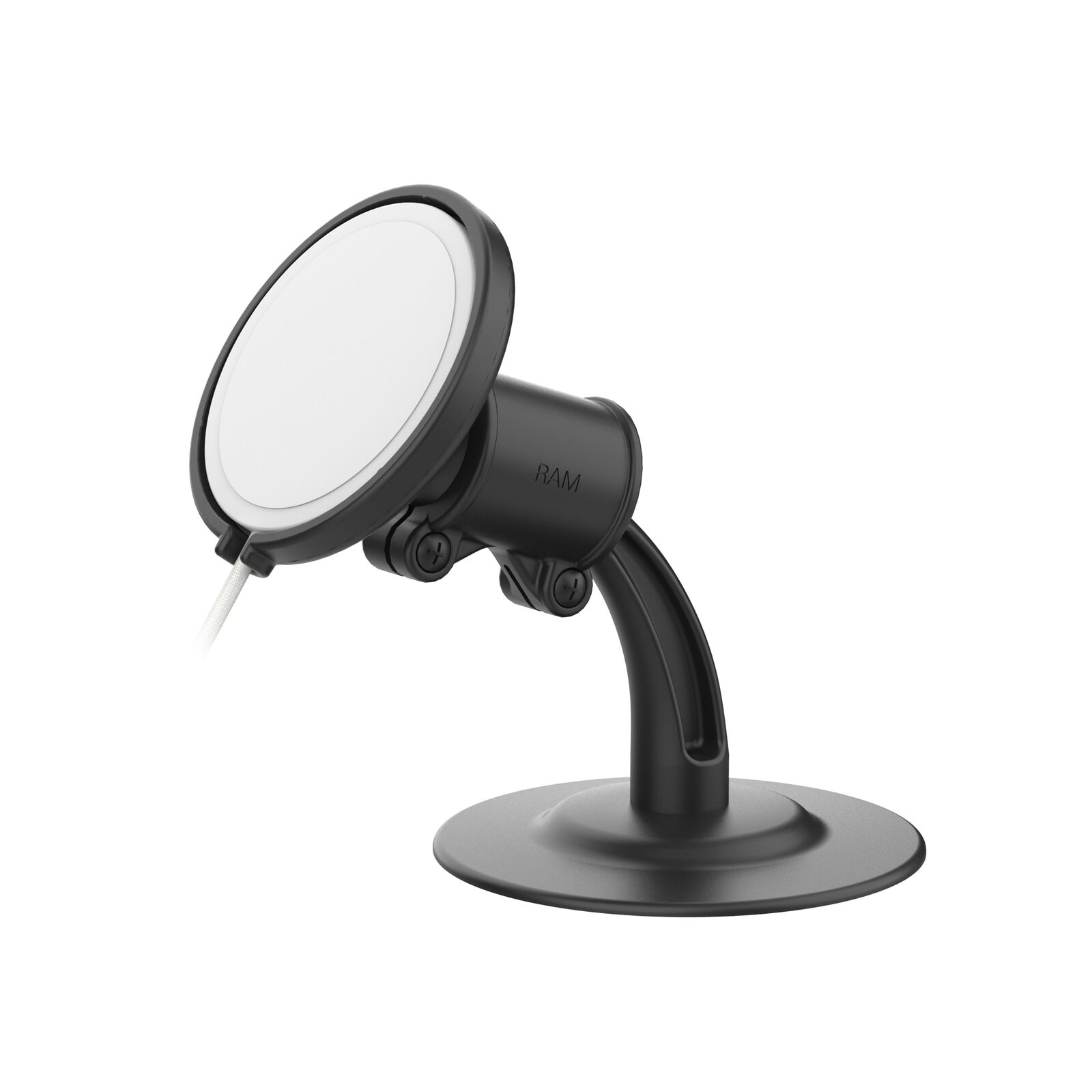 The RAM Lil Buddy Adhesive Dash Mount for Apple 25W MagSafe (RAP-SB-180-AP-MAG-1U) features an adapter puck to make the official Apple 25W MagSafe Charger compatible with all Snap-Link mounting components from RAM Mounts. This adapter provides a snug, secure fit for the 25W MagSafe charging disk, allowing your iPhone 12, 13, 13 mini, 14, 15, and 16 Plus, Pro, Pro Max or later model to snap into place when aligned with the internal magnets. Included in this kit is the RAM Lil' Buddy mount with RAM Snap-Link connector, ideal for dashboard mounting in your vehicle. This product will not support the 15W MagSafe charging disk. Not sure what wattage your charger is? Take a look at the cord! If your cord is braided, then it's 25W. If it's smooth and soft rubber casing, then it's 15W.
