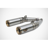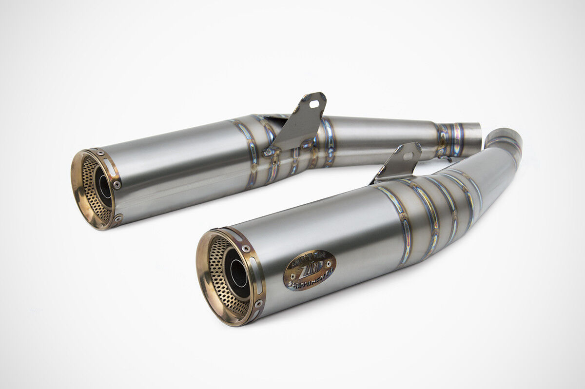 This is a complete 2>2 exhaust system made entirely of titanium, featuring a stainless steel end cap and hand-executed TIG welds. Available exclusively in the racing version (not street legal), it includes removable db killers.
