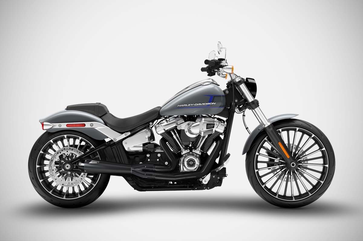 The 2 in 1 full kit for the Harley-Davidson® Breakout 117, is a complete exhaust system made of AISI 304 stainless steel, consisting of headers, a short cone slip-on, and a blackanodizedaluminiumendcap.