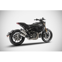 The Zard decat for the Indian FTR 1200, an iconic motorcycle known for its style and character, is designed for those looking to boost performance. It is handcrafted in Italy from high-quality AISI 304 stainless steel or titanium, ensuring durability, longevity, and performance.
