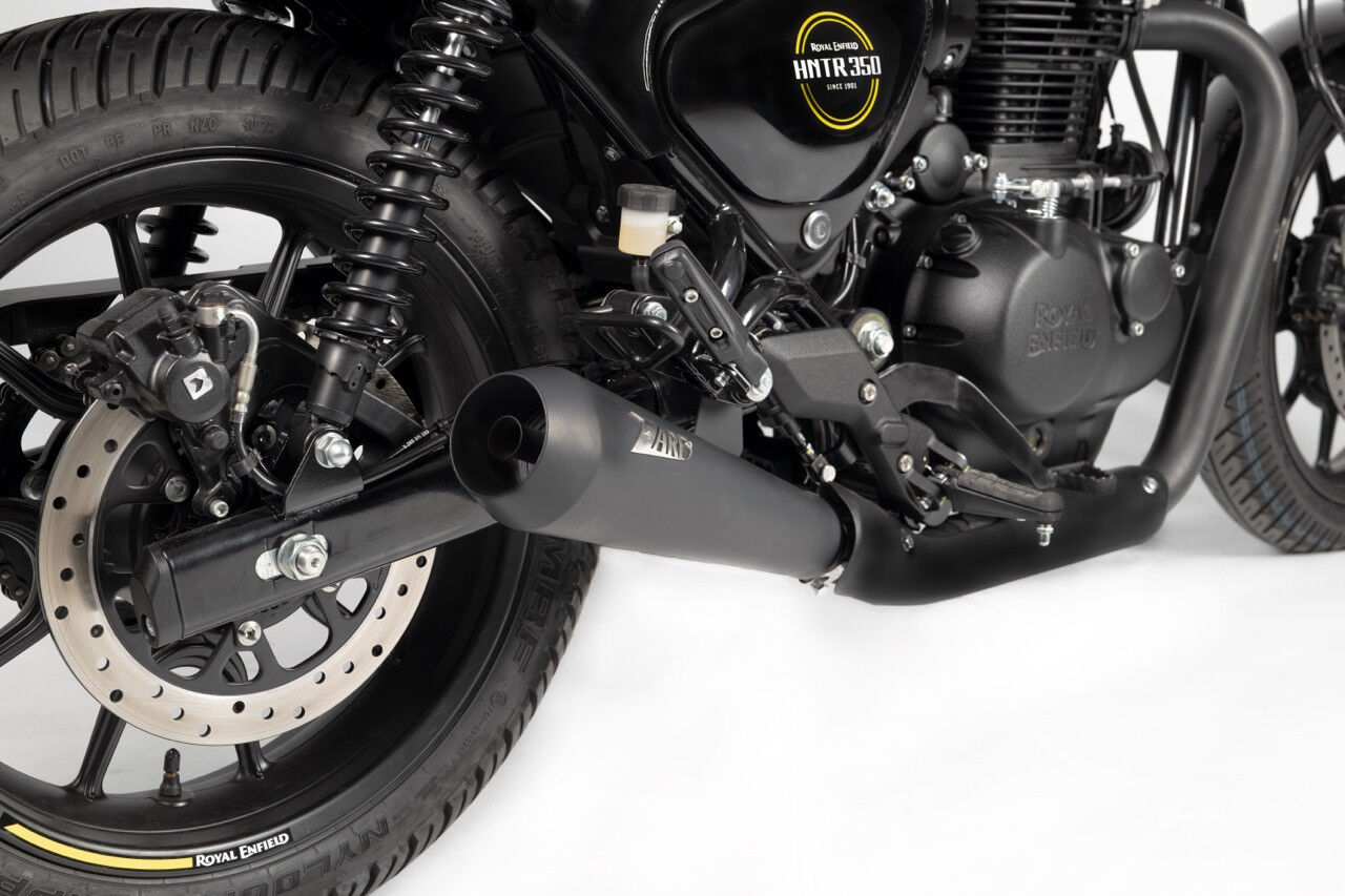 The Zard silencer for the HNTR 350 is entirely designed and handmade in Italy using top-quality materials and features advanced technology, the result of ZARD’s extensive experience in the luxury automotive sector, thanks to collaboration with the GP Tecnica group. The structure, sleeve, and end cap are made of AISI 304 stainless steel to ensure strength, durability, and longevity, with a stylish and durable Cerakote® black finish.