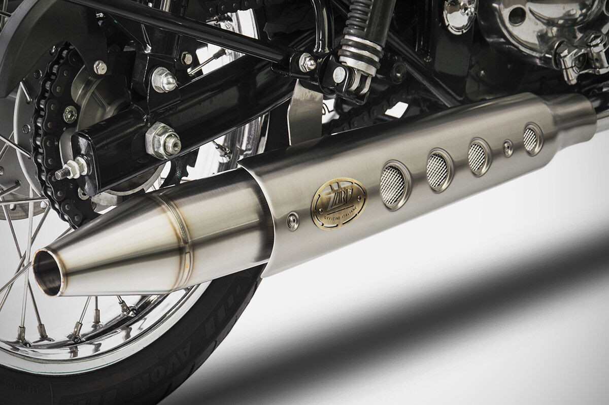The Zard silencer for the Royal Enfield® Classic 500 is entirely designed and handmade in Italy. The structure, sleeve, and end cap are made of AISI 304 stainless steel, ensuring strength, durability, and a high-quality aesthetic finish.