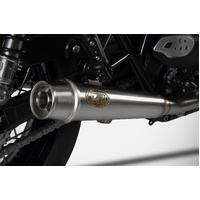 Entirely handmade in Italy, the kit consists of two AISI 304 stainless steel silencers with stainless steel end caps. Available in satin, Cerakote black® and polished finishes, they stand out for their extreme lightness (-9.9 kg (-21.8 lbs) compared to stock) and a distinctive sound that enhances the character of the British twin-cylinder.