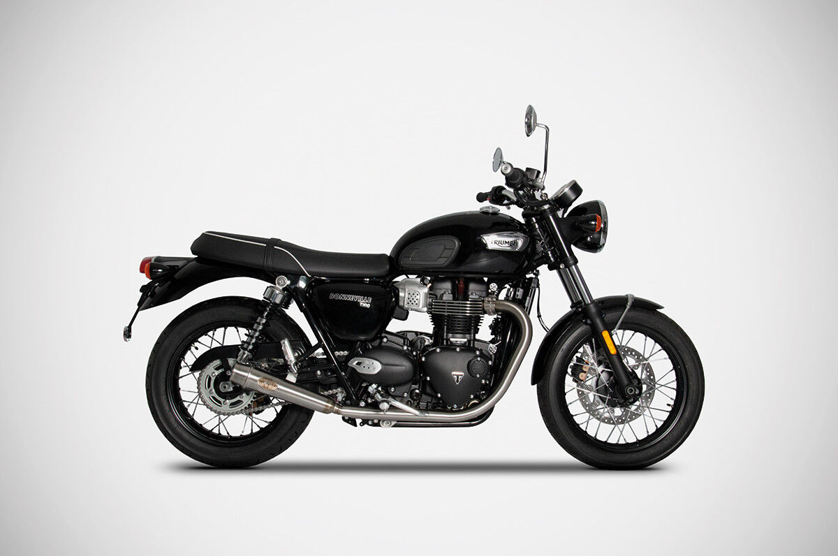 The Zard Homologated Slip-Ons for the Triumph Bonneville T120 give a more aggressive look and a quicker engine response, crafted with Italian artisanal quality.