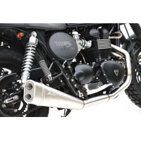 Available in a satin or black finish, the system features a low layout perfectly in harmony with the T100’s retro style. Every detail is designed to offer an authentic riding experience, completed by a deep sound.