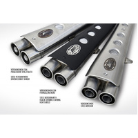 The “Special” high full kit for the Triumph Scrambler 900, entirely handmade in Italy, consists of a header and silencer made of AISI 304 stainless steel, with both sleeve and end cap in stainless steel. It is available in a satin, Cerakote® black finish, or with a black contrasting heat shield. The kit improves the bike’s performance with a significant power increase, a considerable weight reduction of -6.7 kg (-14.8 lbs), bringing it down to just 4.9 kg (10.8 lbs), and delivers a deep, distinctive sound.