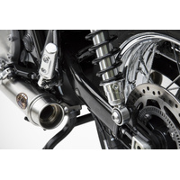 Crafted from stainless steel with the renowned 100% Italian artisanal quality, this accessory kit allows the exhaust to be installed in a rear-set position, weighing only 650 grams (1.4 lbs). It gives the bike an even more distinctive and performance-oriented appearance. Available in satin, Cerakote® black, or mirror-polished finishes.