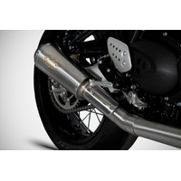 The "SP" Full Kit for the Triumph Speed Twin 1200 is designed for those seeking the best in terms of sound, performance, and design. Made by Officine Italiane Zard, this system, enhanced by refined details like the laser-cut bronzed plate, is entirely handmade in Italy, it consists of a 2-into-1 header and two AISI 304 stainless steel silencers, with a stainless steel sleeve and end cap available in either stainless steel or carbon fiber. Available in a satin or black finish.