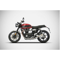 With a significant power increase and a -2 kg (-4.4 lbs) weight reduction, weighing just 3.8 kg (8.4 lbs), the Zard Slip-Ons provide a lighter and more responsive ride. The resulting sound is deep and full-bodied, perfectly matching the character of the Speed Twin 1200. Installation is simple, with no need for structural modifications, and the compact design improves both the aesthetics and overall performance of the bike.