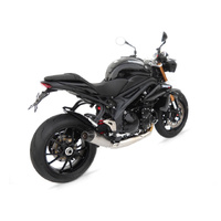 This system delivers a deep and powerful sound, perfectly in tune with the style and engine capacity of the Speed Triple 1050. The innovative design integrates seamlessly with the bike’s lines, adding character and personality, especially with the low-mount configuration. This product is not homologated for road use and features removable db-killers.