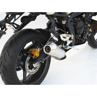 This system delivers an aggressive and full-bodied sound, perfectly in line with the spirit of the Street Triple 675. The compact design integrates harmoniously with the muscular lines of the bike, adding character and personality. The product is available in both racing and Euro 3 homologated versions.