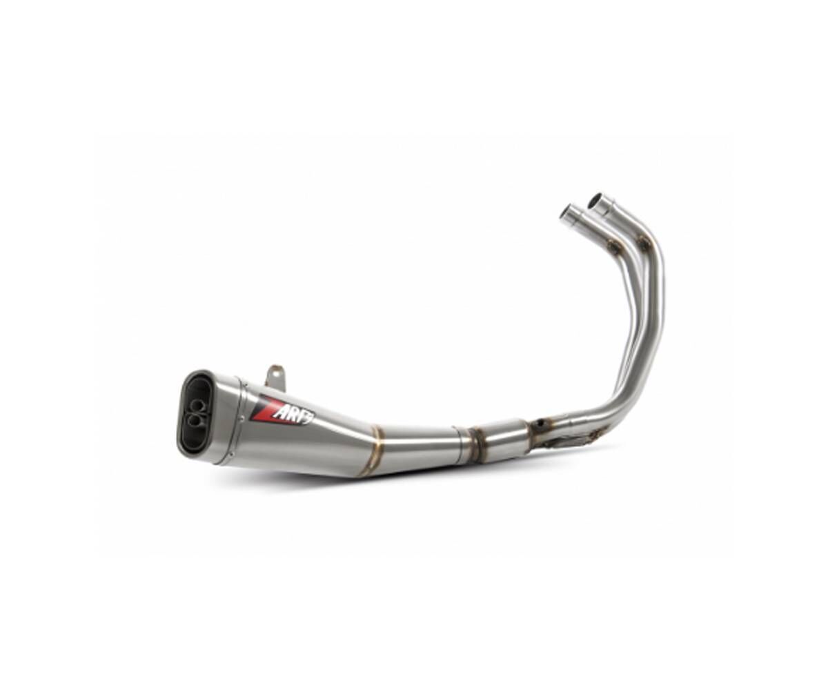 The 2‑in‑1 Full Kit by Zard for the Yamaha MT‑07 is handcrafted in Italy with great attention to detail and performance. The structure is made of AISI 304 stainless steel, with a sleeve in stainless steel, and is available with an end cap in either carbon fiber or stainless steel. The finish is available in either brushed or black ceramic coating.