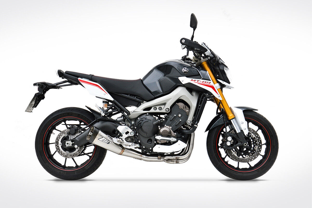 The 3‑in‑1 Full Kit by Zard for the Yamaha MT‑09 is entirely handcrafted in Italy, combining artisanal care and premium quality. The structure is made of AISI 304 stainless steel, featuring a sleeve in stainless steel and an end cap available in either carbon fiber or stainless steel. The finish is available in brushed or black ceramic coating.