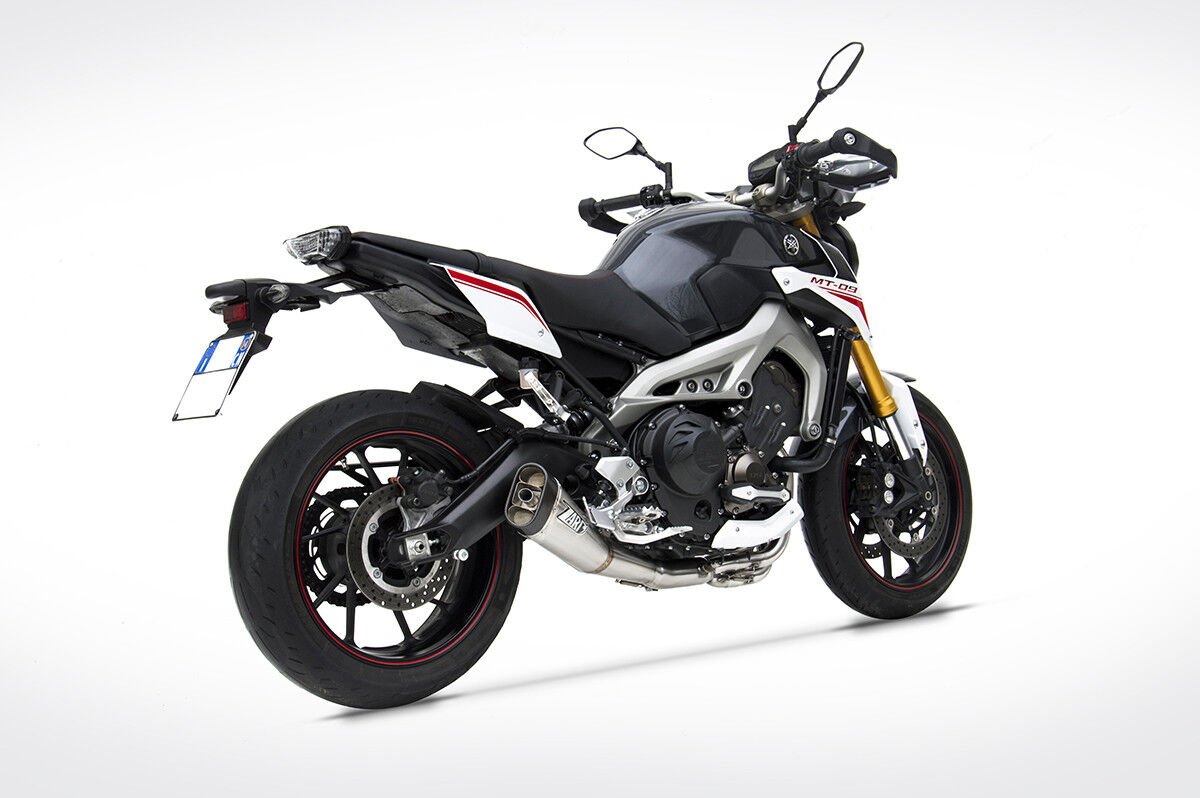 The 3‑in‑1 Full Kit by Zard for the Yamaha MT‑09 is entirely handcrafted in Italy, combining artisanal care and premium quality. The structure is made of AISI 304 stainless steel, featuring a sleeve in stainless steel and an end cap available in either carbon fiber or stainless steel. The finish is available in brushed or black ceramic coating.