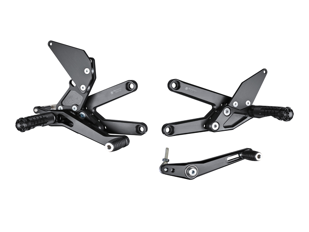 These rearsets for the Street Triple (2013-2016) are adjustable and have the following positions: back -10mm, 0mm, 10mm and up 10mm, 20mm and 30mm.