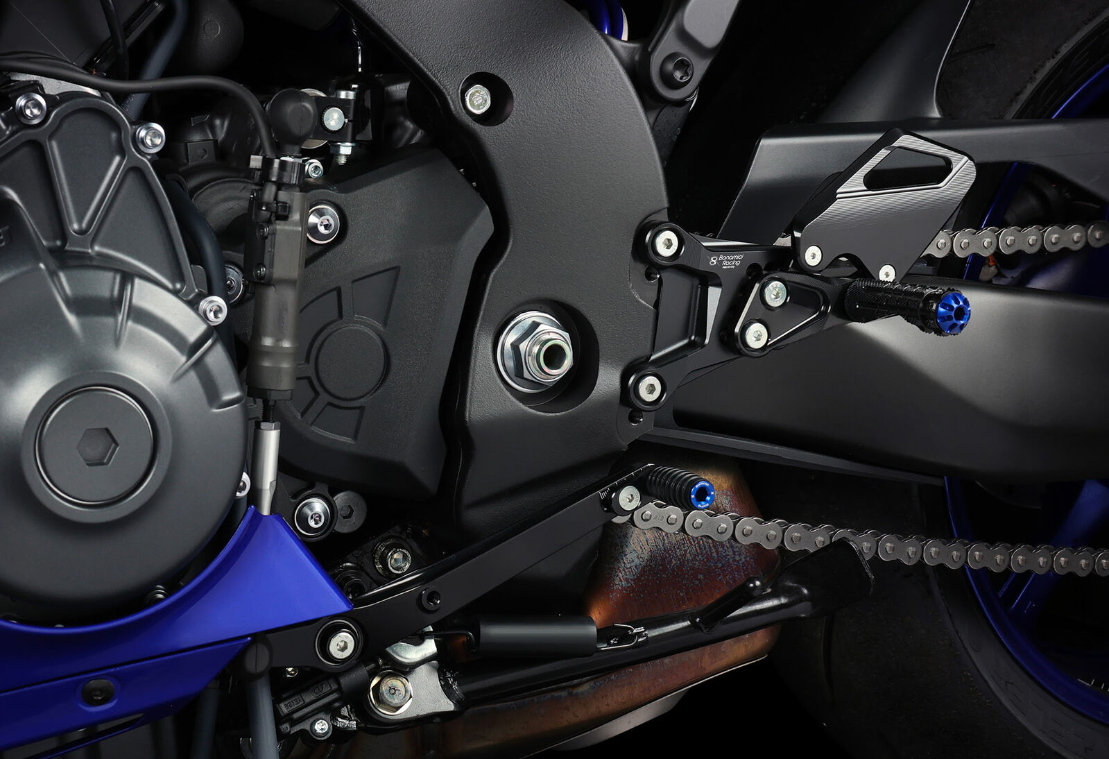 These Bonamici Racing rear sets for the YZF-R9 allow precise positioning of the controls to match the rider’s preferred riding style.