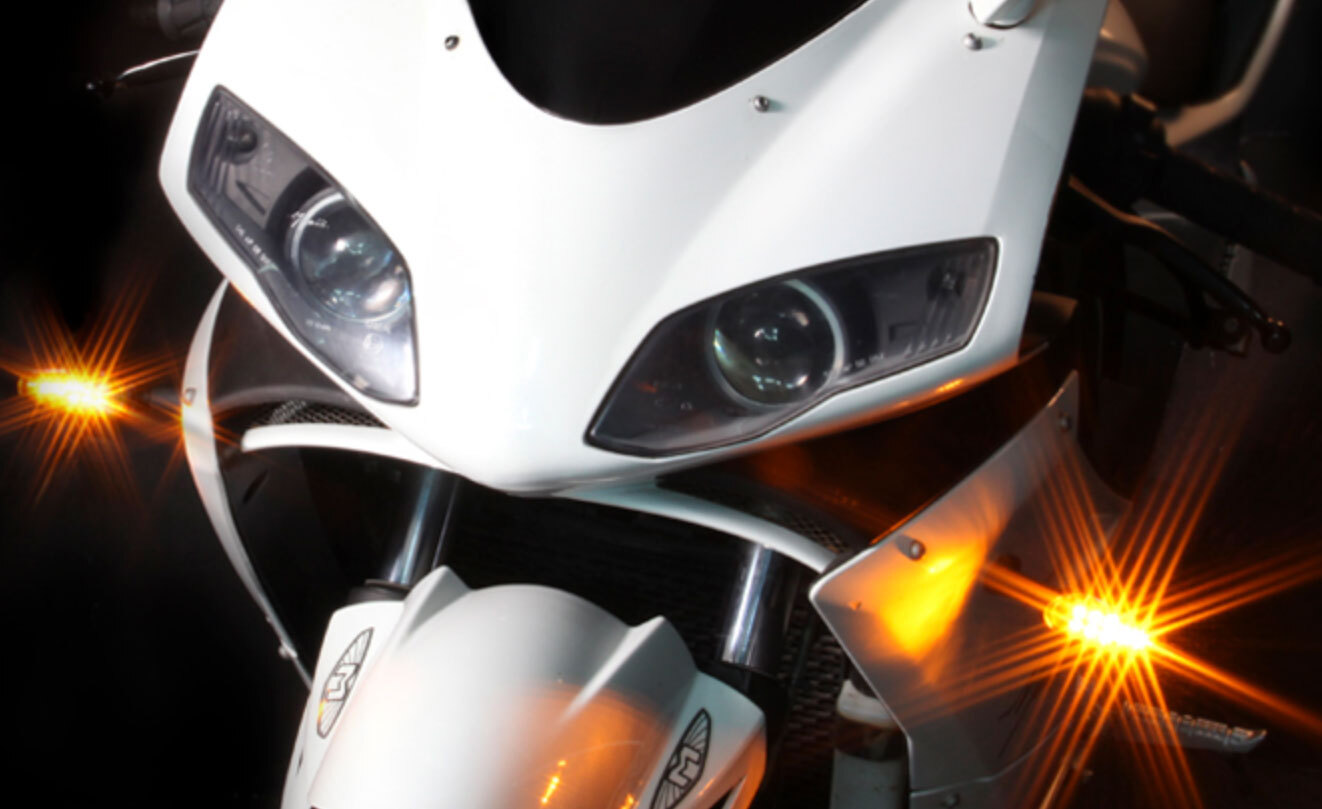 KOSO LED flasher Z1, black plastic housing, tinted glass, E-tested.