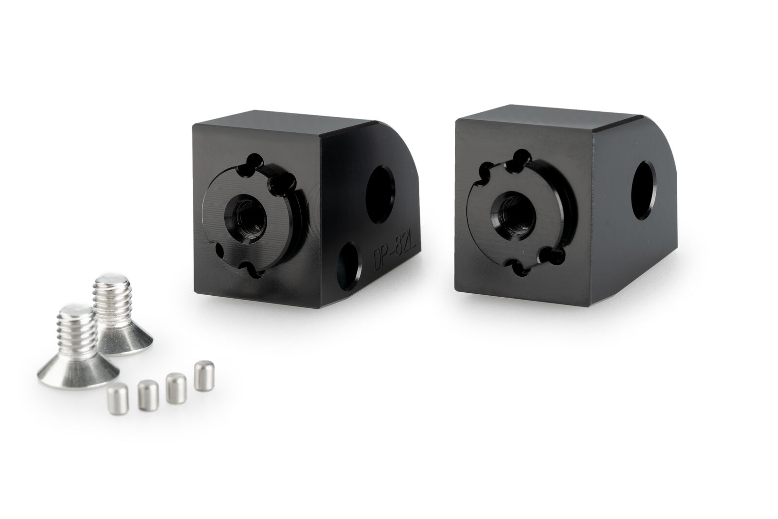 Adaptors machined from a high-performance Ergal 7075 aluminum block and black anodized. They are the perfect transmission to connect our footpegs with the original motorcycle supports.