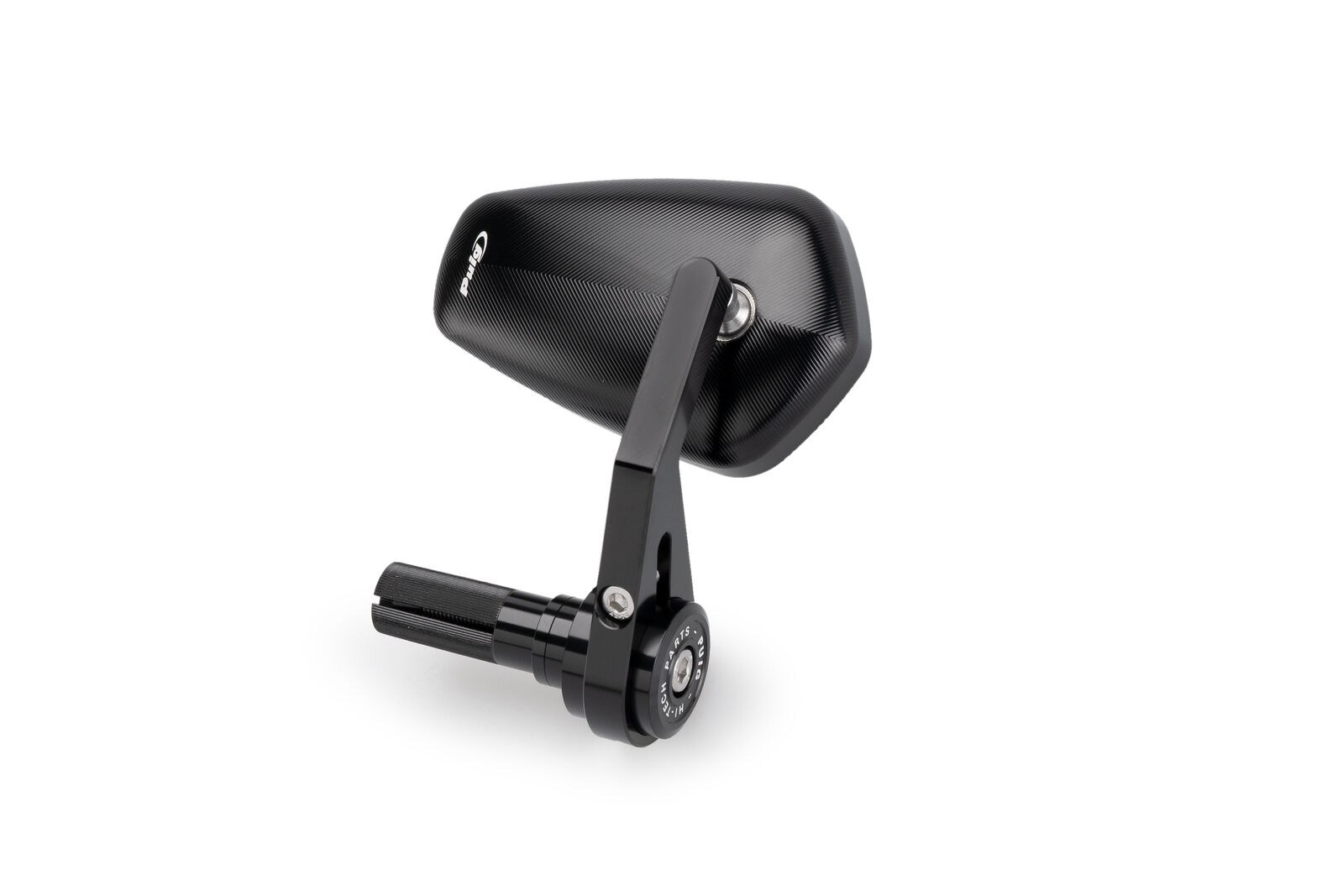 It is made from a single block of high quality aluminum, resulting in a light and resistant piece, with an anodized finish in black or silver, to obtain a perfect finish and be able to choose the one that best suits the aesthetics of your motorcycle. It is mounted at the top of the end of the handlebar -upward or laterally- and is equipped with a convex mirror to improve the rider’s vision.
