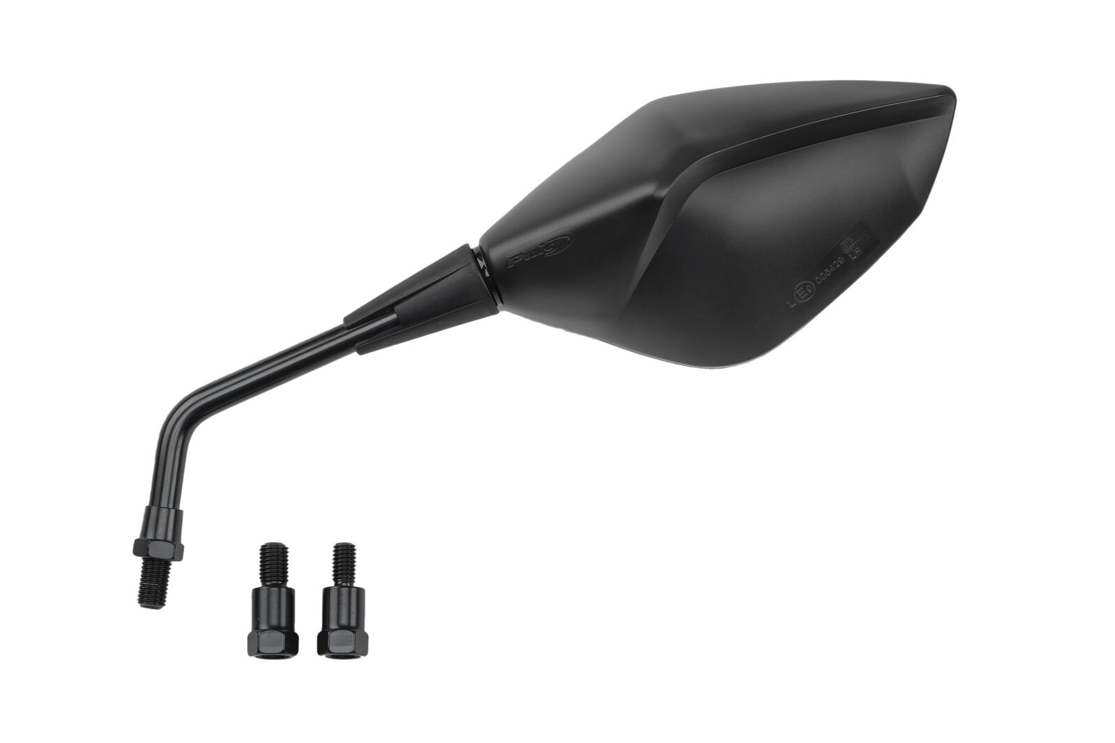 The plastic casing, with sporty and aerodynamic lines for optimal air resistance, surrounds the convex, anti-reflective rearview mirror that provides excellent vision. They are manually adjustable, making it easy and quick to adjust and reposition the mirror.