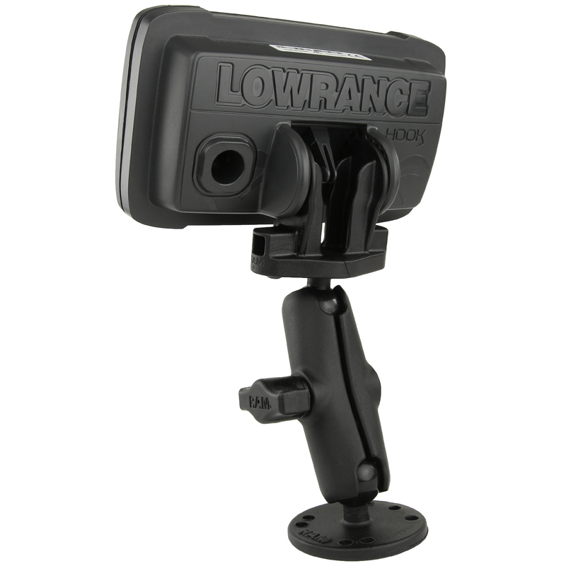 Designed for light duty fresh water use, this B size (1”) aluminium drill-down kit for the Lowrance Hook² allows users to swap out the factory mounting solution with a RAM® Mounts solution. Simply attach the included adapter to the Lowrance Hook² and you’re ready to connect the double socket arm and round base featuring the AMPS hole pattern. Made of high strength composite and powder coated marine grade aluminium, this kit is designed to keep your Hook² secure and stable in rugged environments on your kayak or inflatable.