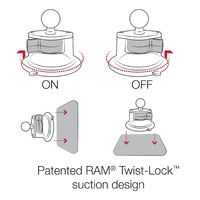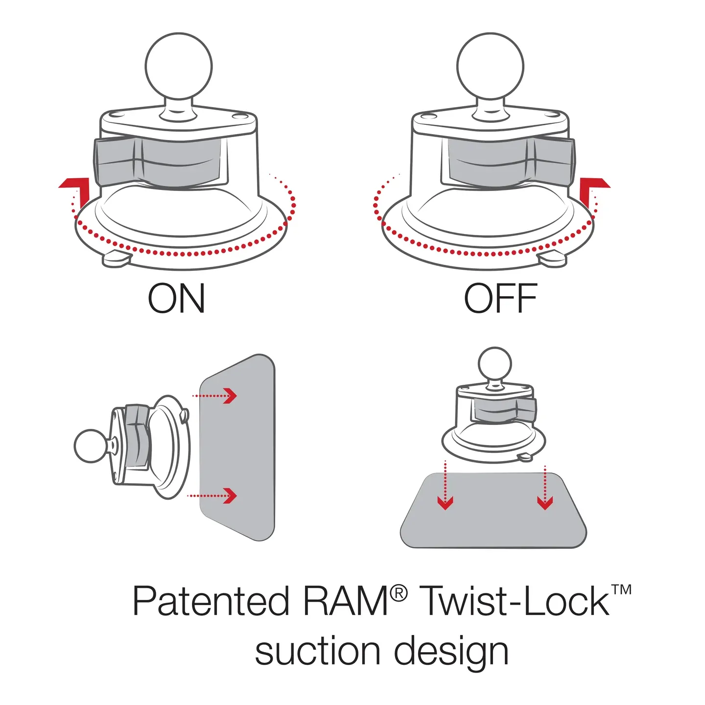 Includes RAM® Twist-Lock™ suction cup base ideal for vehicle windshields and medium length, B size RAM® double socket arm; ball and socket technology allows for near-infinite adjustability