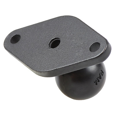 The RAM-B-238U consists of a 1" diameter rubber ball connected at right angles to a 2.43" x 1.31" diamond base. The base has two holes 1.912" from center to center, matches the industry standard AMPS hole pattern and will connect to a large variety of RAM Mount and third party cradles.