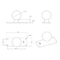 The RAM-D-202U-25 contains a 2.25" diameter rubber ball connected to a rectangular plate with a 4-hole pattern of 1.5" x 4.5" center to center.