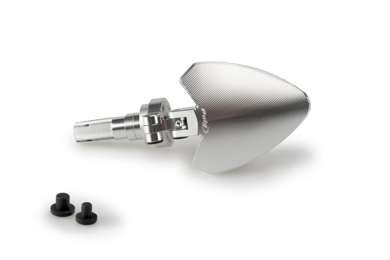 On a functional level, it has a turning mechanism that allows the mirror to be folded down to protect it when passing through narrow areas and recover its initial position without any effort. Mirror mounted on the handlebar end laterally with universal fastening mechanism.