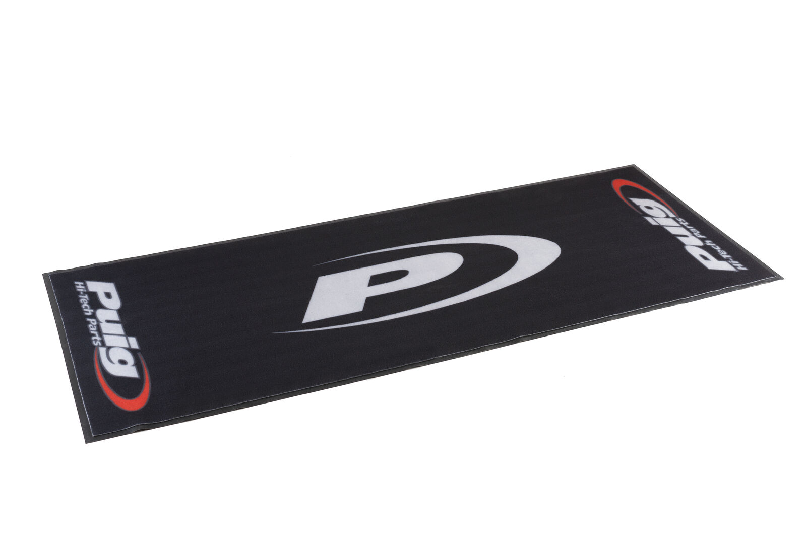 The Puig Hi-Tech Parts carpet is designed to help riders keeping their garage or workshop clean. Made of 100% nylon, non-slip and water resistant, the carpet allows you to park the bike on top of it and carry out maintenance or customization operations keeping the floor clean.